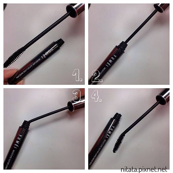 Nita小撇步 如果你覺得睫毛膏刷子直到不行很不好刷,可以像上面這樣凹你的睫毛膏噢!