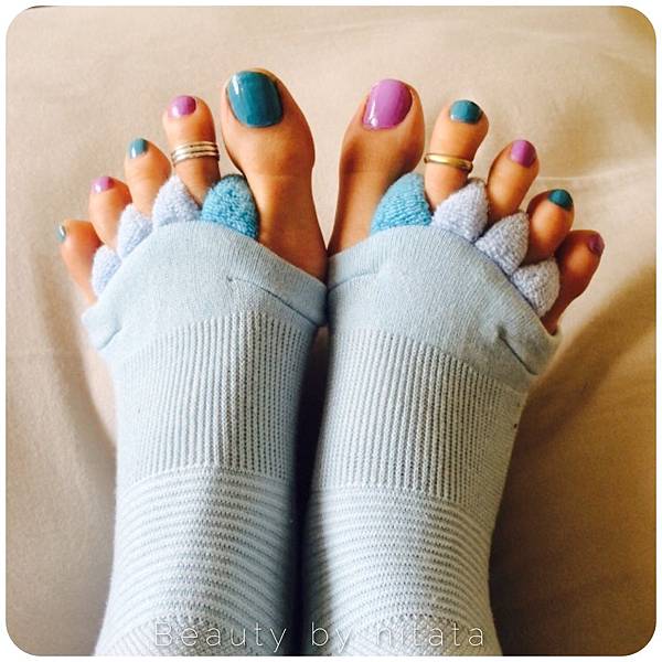 但是這雙襪子穿上去擦指甲油,不知為何我就是會乖乖在床上XD
