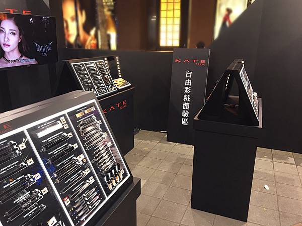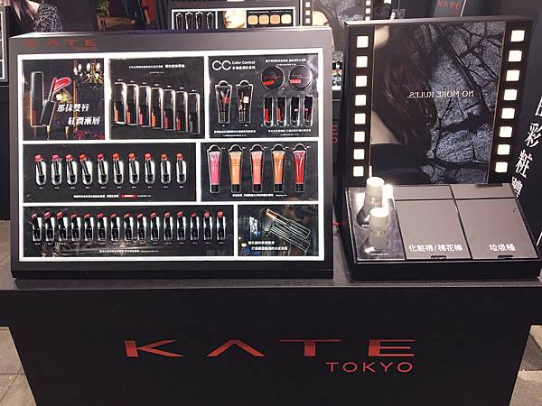 體驗區放滿了kate目前全部商品,重點是不用擔心像一般開架式,試用品都被用的都爛爛的或是沒得試用