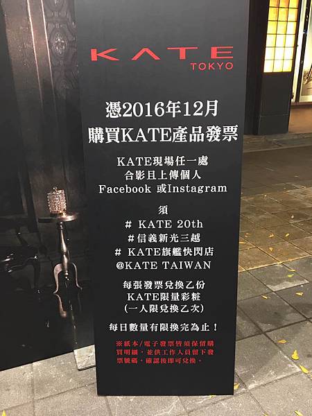 6)憑購買kate產品發票,現場打卡,送限量彩妝
