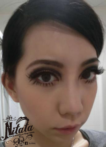 ×眼妝為3步驟× STEP 1 先畫個一般妝或煙燻都可以,只要眼妝濃一點,再貼上誇張假睫毛